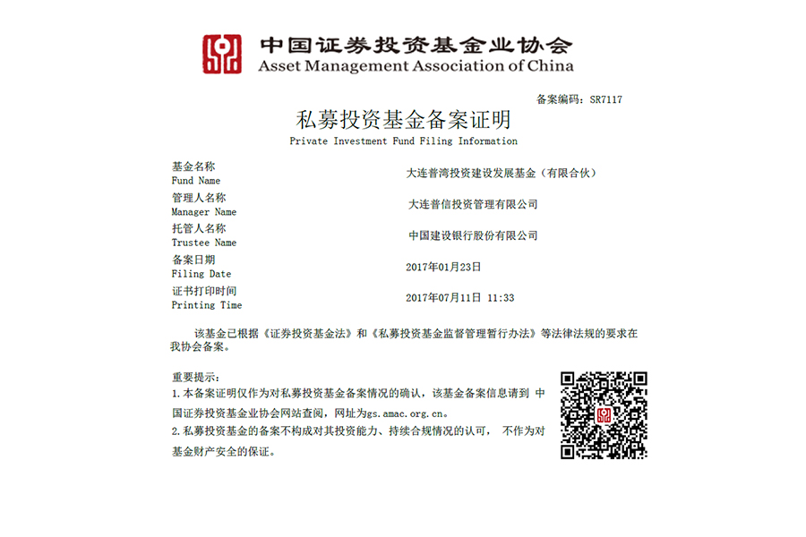 • 私募投資基金備案證明