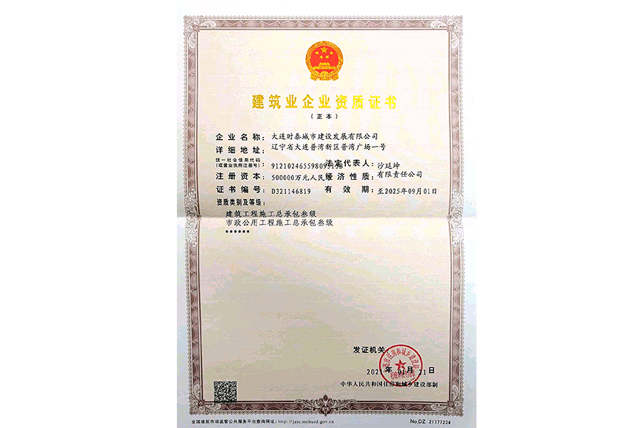 • 公司建筑業(yè)企業(yè)資質(zhì)證書